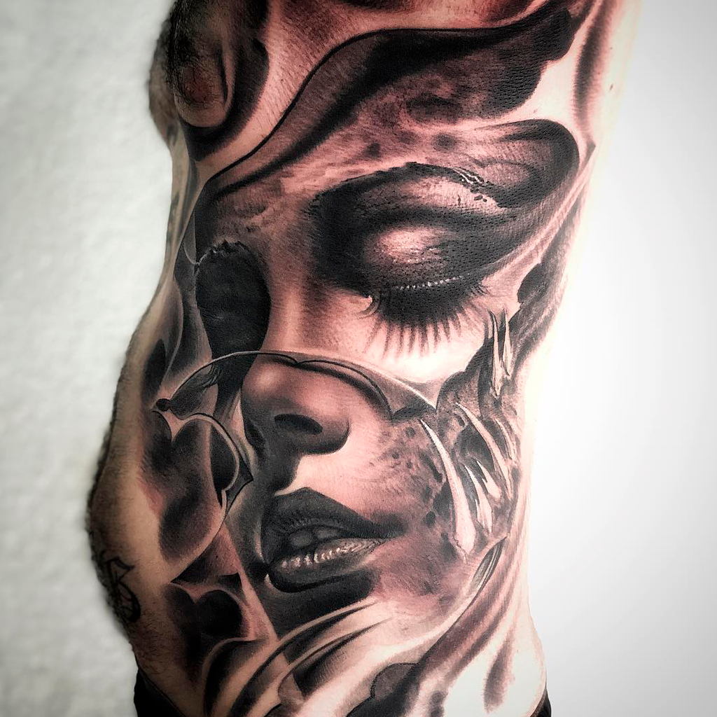 Ezequiel specializes in realism, surrealism, horror, portraits and bio-mechanics; he mainly works in black and grey. His activity as a tattoo artist began in 2007.